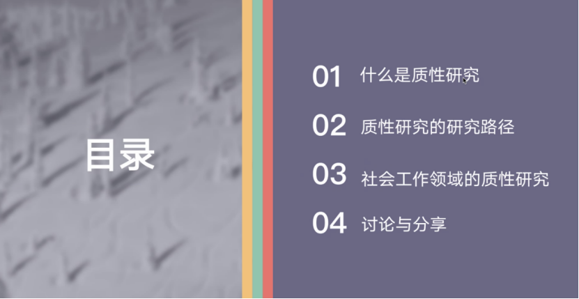 讲座过程中,窦老师主要从什么是质性研究、如何提出质性研究问题以及如何收集和分析质性资料等方面介绍质性研究的基本思路,并通过互动和案例示范,介绍质性研究的路径和重难点以及在社会工作领域质性研究的应用。