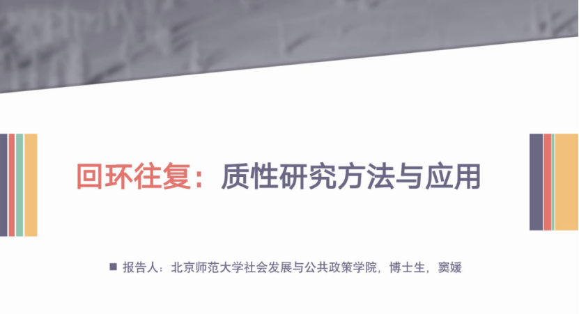 2022年5月9日,永利集团304官网社工系邀请北京师范大学社会发展与公共政策学院博士生窦媛为2021级社会工作专业硕士分享了主题为“回环往复:质的研究方法与应用”论文写作指导讲座。本次讲座由政法学院副教授张燕老师主持。