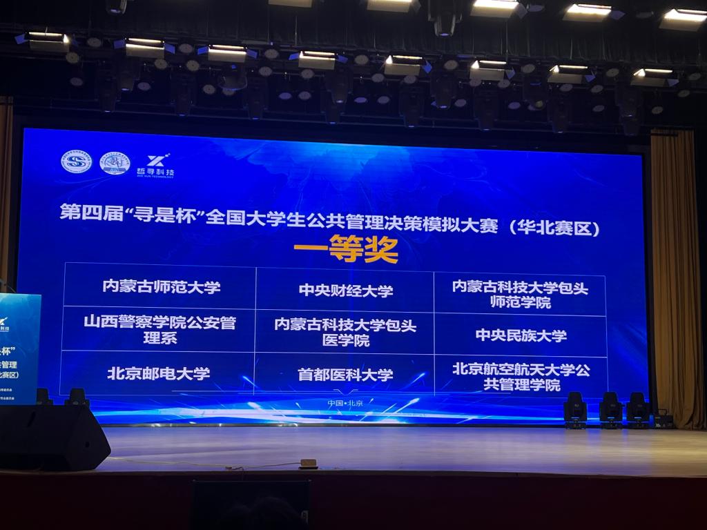 4月25日至27日,第四届“寻是杯”全国大学生公共管理决策模拟大赛(华北赛区)在对外经济贸易大学举办。本次大赛由教育部高等学校公共管理类专业教学指导委员会指导、中国科学学与科技政策研究会主办。来自北京市、天津市、内蒙古自治区、河北省、山西省的46所高校的47支队伍参加大赛。永利集团304官网由高德胜院长、马慧老师指导,政治学与行政学专业2023级赵子璇、刘雨萌,2024级孙齐怿三名同学组成的“鹿鸣破晓队”代表学院参赛。