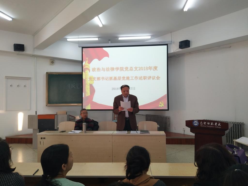 会上,米长存同志传达学习了学校《2018年度党组织书记抓基层党建述职评议考核工作方案》(包师党办发[2018]37号)精神,通报了学院党组织书记抓基层党建述职评议考核工作的前期准备情况。教工党支部书记刘军和学生党支部书记嘎日仓敖日布代表教工党支部和学生党支部分别进行了抓基层党建工作述职。两位支部书记汇报了各自支部一年来抓党建工作情况,查摆了存在问题及原因,提出了努力方向。党总支书记张宗祥分别对教工支部书记和学生支部书记的述职进行了点评,肯定了主要成绩,也指出了不足和努力方向。随后,结合支部书记述职情况和平时工作,参加会议的党员分别对教工党支部和学生党支部进行了测评。