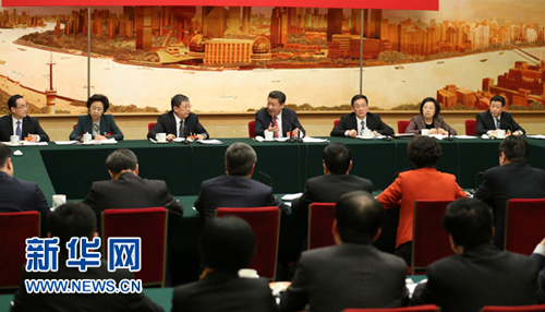 3月5日,中共中央总书记、国家主席、中央军委主席习近平参加十二届全国人大三次会议上海代表团的审议。 新华社记者 黄敬文 摄