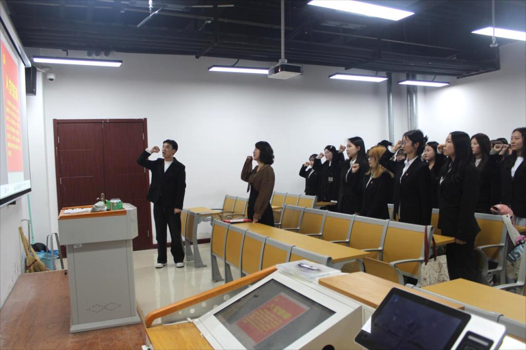 随后,全体师生党员共同起立,举起右拳,面向党旗,庄严宣誓。铿锵有力的誓言,进一步坚定了全体党员的理想信念和奋斗方向。