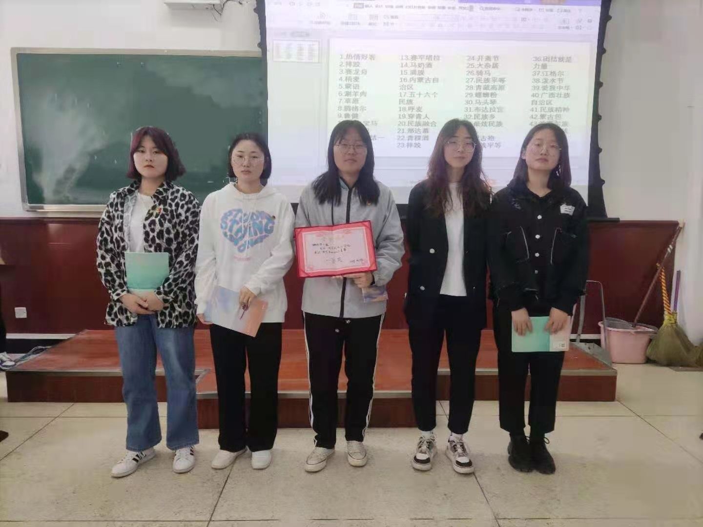 班级团支书为全班同学介绍了“铸牢中华民族共同体意识”的意义,并以团小组为单位进行知识竞赛,通过知识竞赛的形式既促进了团小组间的凝聚力,又让班级同学在竞赛中学习巩固了“铸牢中华民族共同体意识”的知识。