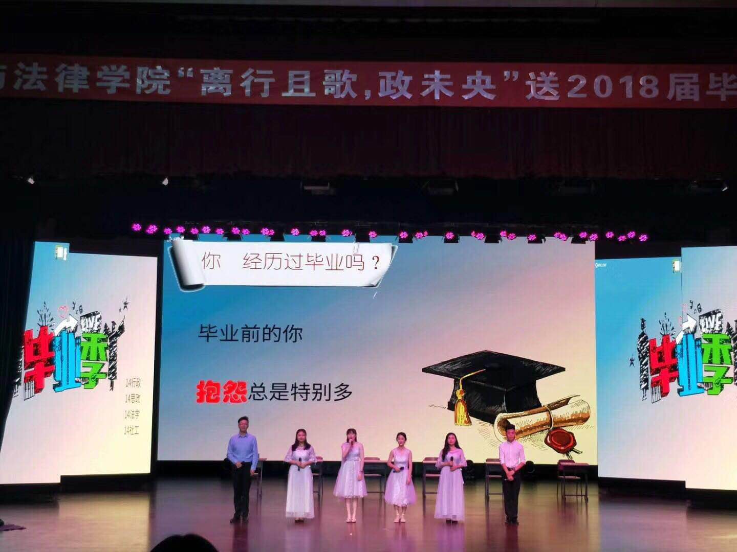 2018年6月7日晚,永利集团304官网在会堂举办“离行且歌 政未央”送2018届毕业生晚会。学院党总支副书记米长存、团总支书记敖日布、辅导员郑霞、14级社会工作班主任秦嗣权出席并观看晚会。