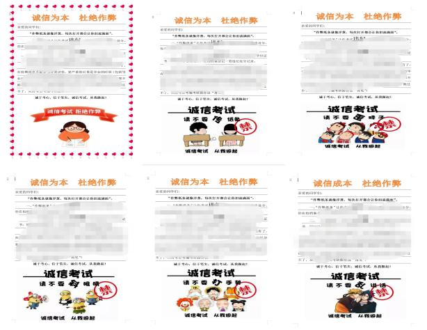 积极宣传,营造氛围。学院策划了6种漫画版宣传手册,本着“换方式,不说教,不灌输”的理念,通过在学生公寓楼、教学楼和班级发放宣传单的形式做好氛围营造,处处可见的诚信考试教育如丝丝沁香醉人心脾,根植于心,让你在诙谐中感受诚信考试的真谛。