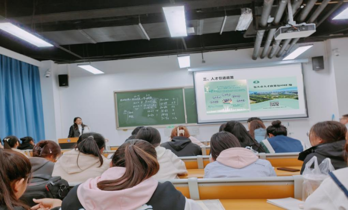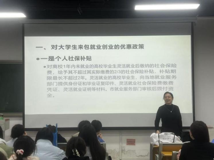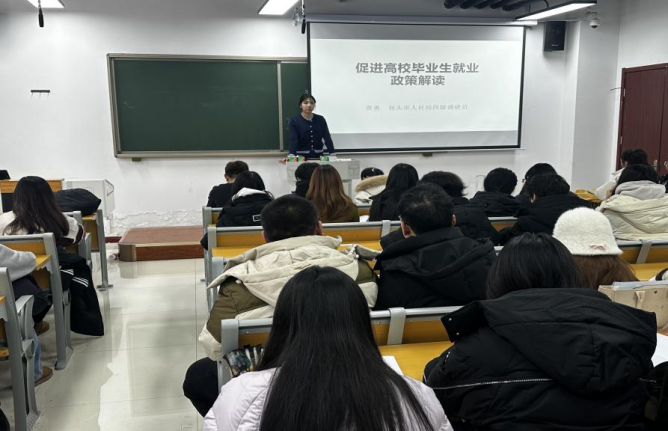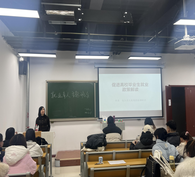 在各班级互动环节中,同学们围绕《包头市高校毕业生就业政策解读》文件内容,分组讨论了自己的求职方向与困惑,各小组代表踊跃发言,提出了诸如“就业还是创业”、“专业对口的重要性”“如何平衡薪资与发展空间”等问题。在答疑解惑环节,面对同学们关于就业创业选择、职业转型的纠结,老师们结合案例与个人经验,条分缕析给出建议,鼓励大家做好职业规划,拓宽职业视野、挖掘自身潜能。
