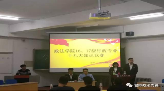 为深入学习党的十九大精神,学习贯彻习近平新时代中国特色社会主义思想,在16级、17级行政班学生中兴起学习宣传贯彻党的十九大精神和习近平新时代中国特色社会主义思想的热潮,打造行政班班级特色活动,16级行政班班委特开展16级、17级行政班关于十九大精神的知识竞赛活动。此次比赛16、17级行政班各派出两支代表队参赛,经过必答题、速答题、风险题、微宣讲四轮比拼,16行政班两支队伍总分较为靠前赢得最终的胜利,另外17级行政班1队获得最佳队伍奖,16行政班张玲获得最佳个人奖,17行政石扬获得最佳宣讲员。通过此次比赛,无论是参赛人员还是到场的观众,都对十九大报告有了更深的理解,对于专业学习也有了更多的认识,16、17级行政专业两届学生通过比赛互相熟悉,拉近了两届学生的距离。