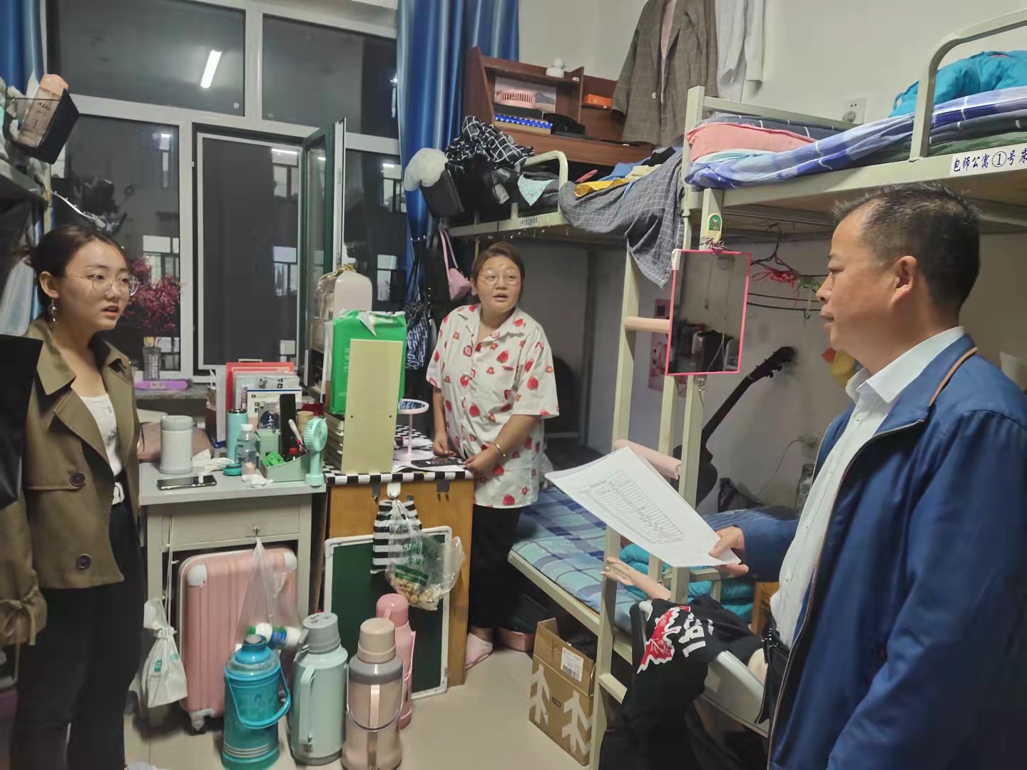 检查开始前,政法学院郭宏升副书记组织宿管会、团总支、学生会、社团联合会负责人,在政法学院党员工作站召开了“星级文明宿”舍评比推进会。他首先强调了国庆期间宿舍安全卫生的重要意义,征求了推进“星级文明宿舍”评比的办法和建议。随后,带领在场的所有学生干部检查了近期宿舍检查中不合格的宿舍,现场指出问题并让他们整改。同时,对新生宿舍进行了走访,仔细询问了国庆节不回家的同学,叮嘱他们国庆期间外出时要结伴而行,注意交通和财产安全。