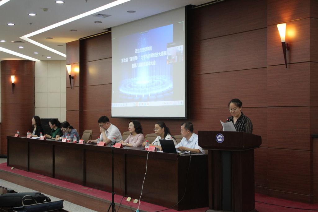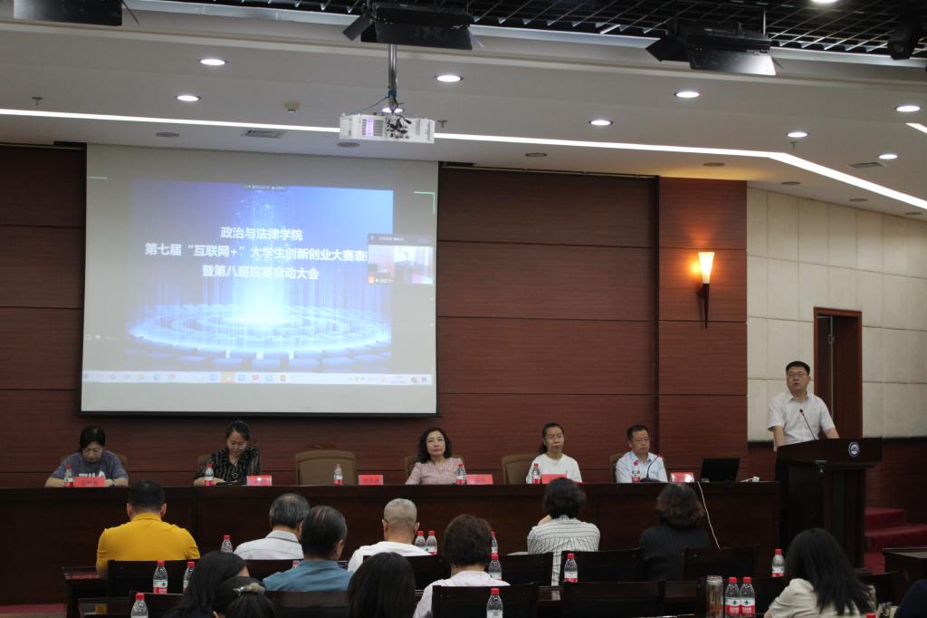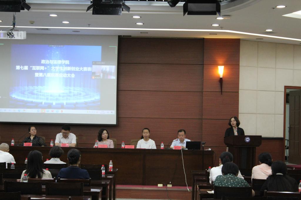 为了落实我校校第八届“互联网+”大学生创新创业大赛工作推进会要求,迎接校赛和省赛,6月2日下午,政法学院在图书馆会议厅举办了第七届“互联网+”大学生创新创业大赛表彰暨第八届大赛启动会。创新创业教育学院院长张东虎、副院长冯平、政法学院副院长李霞、各系系主任、学工办主任和全院老师出席了会议。大一、大二、大三各班学生代表近300人参加了会议。会议由副书记郭宏升主持。