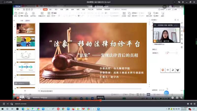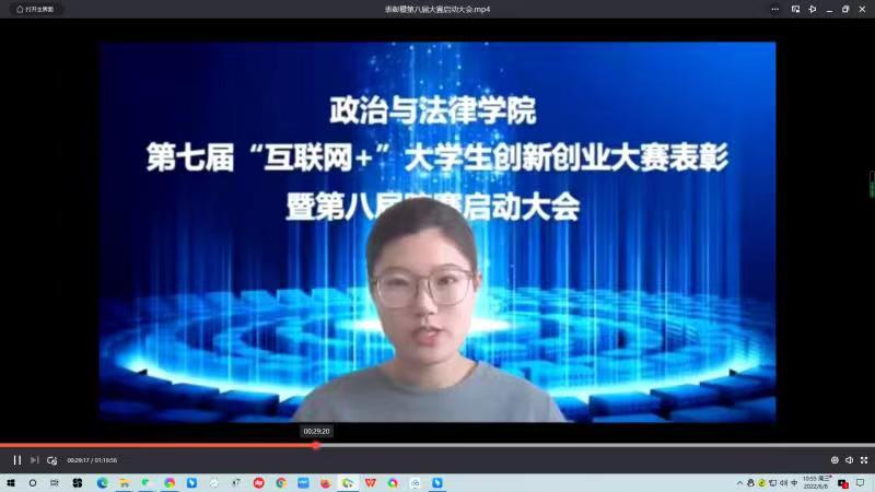 会上,政法学院副院长李霞宣布了《政法学院关于表彰第七届“互联网+”大学生创新创业大赛优秀指导教师和优秀组织奖的决定》,创新创业教育学院院长张东虎、副院长冯平为优秀指导教师和优秀组织班级颁发了荣誉证书。获得省赛银奖的参赛选手18社工班的方祺同学分享了自己的参赛过程和为之付出的努力,表达了对这一赛事的热爱和自己的收获心得。她和20法学一班的赵宇冉展示了自己的获奖项目。胡建虹老师从如何撰写项目计划书、给学生推荐优质课程资源、参加“互联网+”大赛的意义和第八届互大赛的新变化几个方面分享了指导学生参赛的经验。
