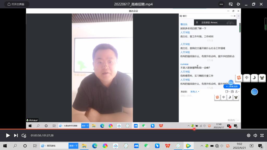 为提高就业质量、促进毕业生就业,6月17日下午,政法学院举办了访企拓岗线上招聘会。学院党总支副书记郭宏升、辅导员赵鹏然、毕业班班主任、18级社工、法学、行政班三个专业的毕业生参加了会议。会议由党总支副书记郭宏升主持。