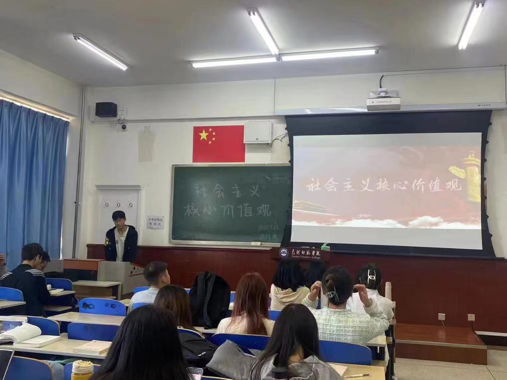 22社工班于2022年9月25日展开团日活动,首先,由22社工班班长介绍了习近平总书记在中国共产党第十九次全国代表大会上关于社会主义核心价值观的报告。接着请同学起来说自己对于“社会主义核心价值观”的重要性、通过观看生动有趣社会主义核心价值观24字解说视频,充分调动起现场的气氛。最后,全体同学共唱团歌,结束了本次团日活动。