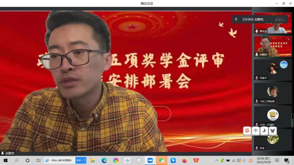 为了切实发挥奖学金的育人功能和激励作用,促进学生德智体美劳全面发展,2022年9月28日晚上,永利集团304官网在腾讯会议上召开了五项奖学金(国家奖学金、国家励志奖学金、乌兰夫奖学金、自治区奖学金和自治区励志奖学金)评审工作安排部署会。学工办主任袁爱荣、辅导员赵鹏然、各班班主任及班长参加了会议。会议由党总支副书记郭宏升主持。