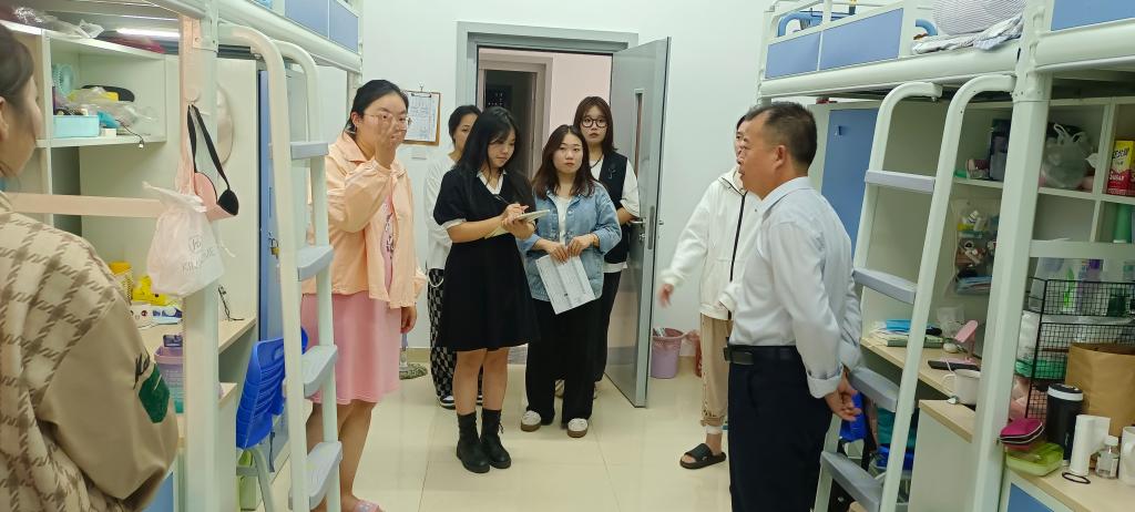 检查开始前,郭宏升副书记组织宿管会全体成员、团总支、学生会主席团干部,在4号楼113政法学院党员工作站召开了“星级文明宿”舍评比推进会。他首先强调了国庆期间宿舍安全卫生的重要意义,征求了推进“星级文明宿舍”评比办法、党员联系新生宿舍实施方案的意见和建议。随后,带领在场的所有学生干部检查了9号楼、2号楼、4号楼不同年级、不同班级的学生宿舍,现场指出问题并让他们整改。同时,对新生宿舍进行了走访,向他们说明了学校的疫情防控政策,希望他们能理解学校这些政策的有关规定。