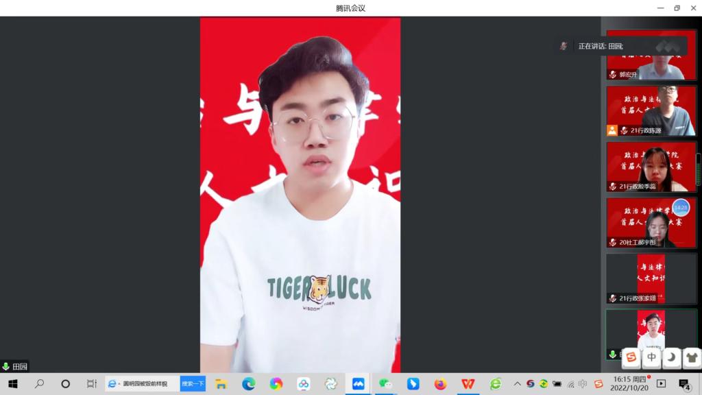 19行政班田园同学介绍了人文知识竞赛的来龙去脉,政法学院历年参赛情况,自己参加比赛的经验教训、注意事项等内容,对参赛知识和题目进行了培训。