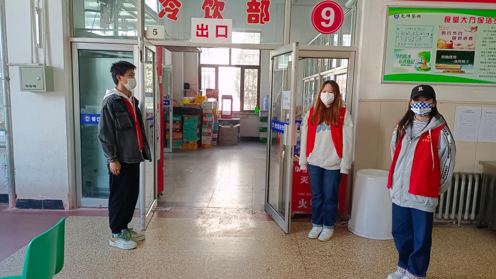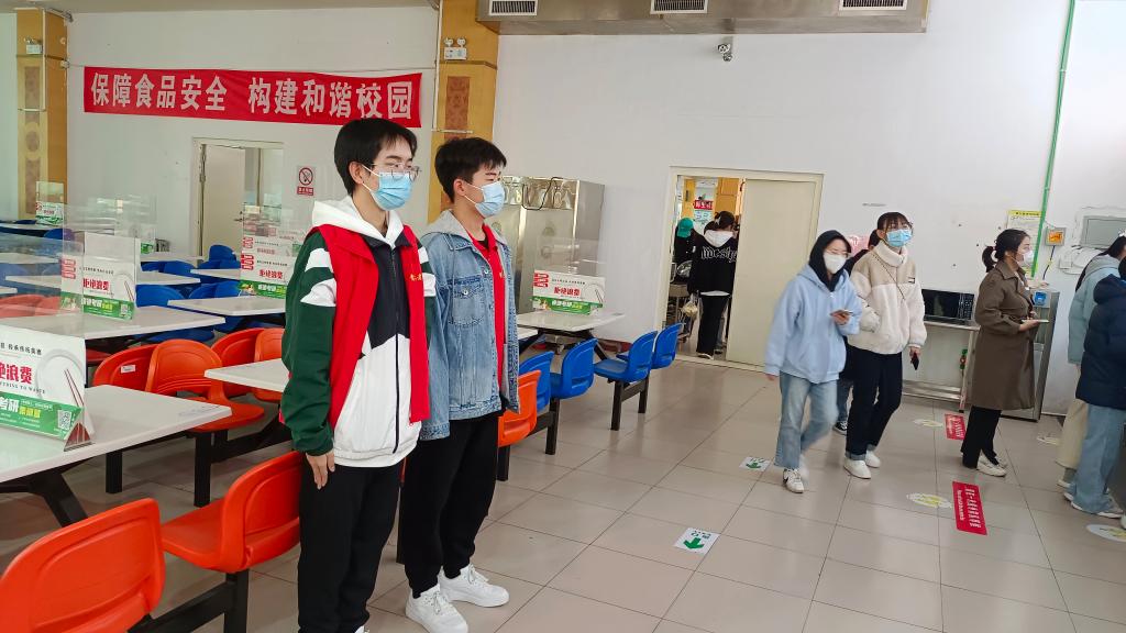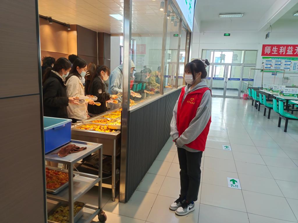 此外,志愿者们还劝导就餐学生按需点餐,倡导光盘心动。小小红马甲,颗颗志愿心。志愿者们用责任心编织了校园疫情防控的安全网。