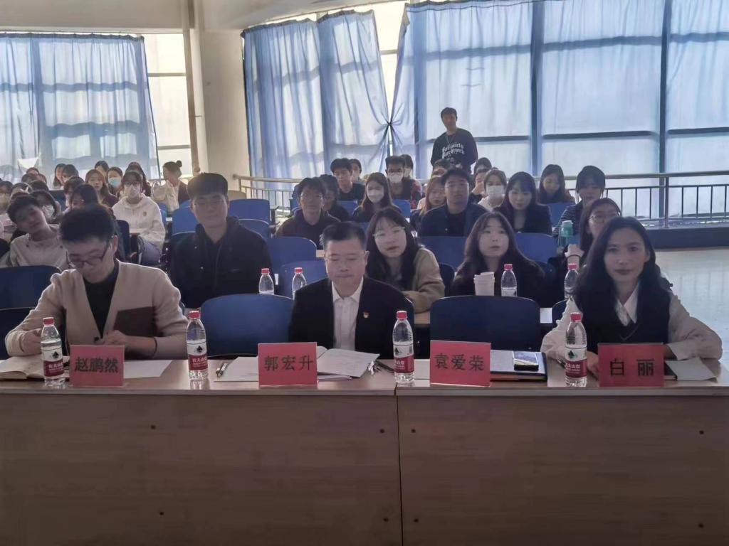 为加强学生干部队伍建设,充分发挥学生骨干的作用,培养青年马克思主义者,2023年3月9日下午,政法学院在博学楼东506教室召开了新学期学生骨干大会暨青年马克思主义者培训会。学院党总支副书记郭宏升、学工办主任袁爱荣、辅导员白丽、赵鹏然出席了会议,学院全体学生干部和各班班委会团支部成员参加了会议。