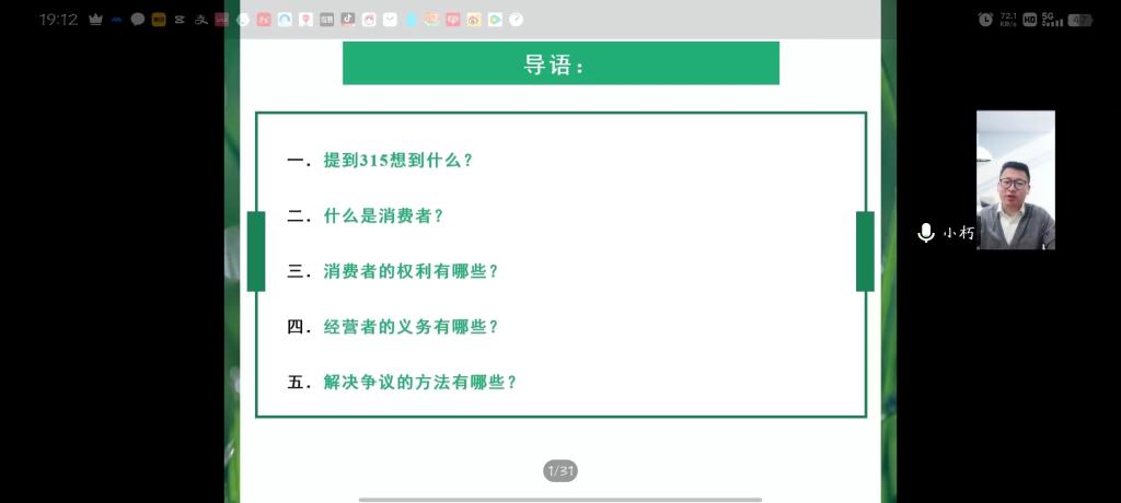 为了让同学们更好的了解3.15,了解消费者权益保护。2023年3月23日晚上七点,永利集团304官网在线上举办了3.15国际消费者权益日专题讲座,辅导员王健老师为本次讲座的主讲人,永利集团304官网全体党员和预备党员、永利集团304官网21、22届学生参加了此次讲座。