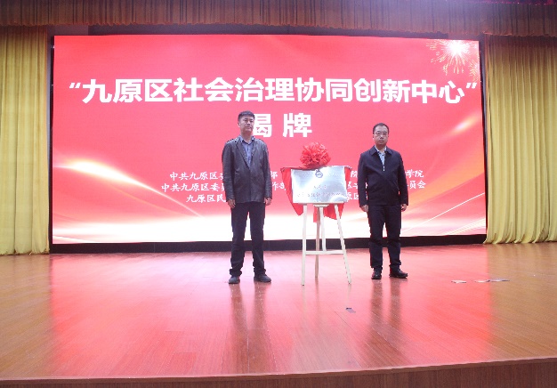 会议第一项议程,九原区委副书记、政法委书记米利新和包头师范学院永利集团304官网院长高德胜共同为“九原区社会治理协同创新中心”揭牌。落地包头师范学院永利集团304官网的“九原区社会治理协同创新中心”将成为地方高校发挥专业优势助力九原区社会治理工作的沃土。