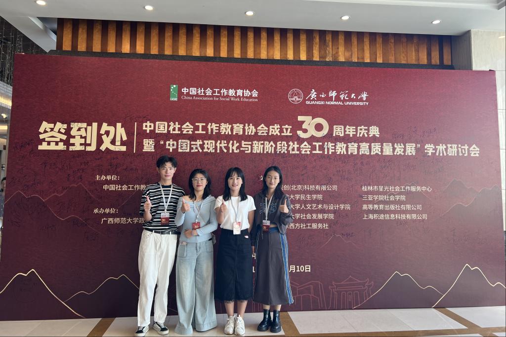 2024年11月8日-10日,中国社会工作教育协会成立30周年纪念暨“中国式现代化与新阶段社会工作教育高质量发展”学术研讨会在广西师范大学成功举办,永利集团304官网社会工作系系主任郭艳,23级社会工作研究生王研方、薛丽雅、赵佳乐参加了本次会议。