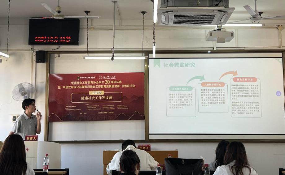 作为中国社会工作教育协会理事单位,学院高度重视社会工作专业硕士参与学术交流和行业实践,硕士生导师张燕、李霞和魏成对三位研究生的汇报主题、论文结构、研究意义等内容进行了悉心指导;同时,组织本科生录制的社会工作专业宣传及祝福视频在大会上展播,呈现了学院社会工作专业“教学-科研-服务”三位一体的人才培养模式。