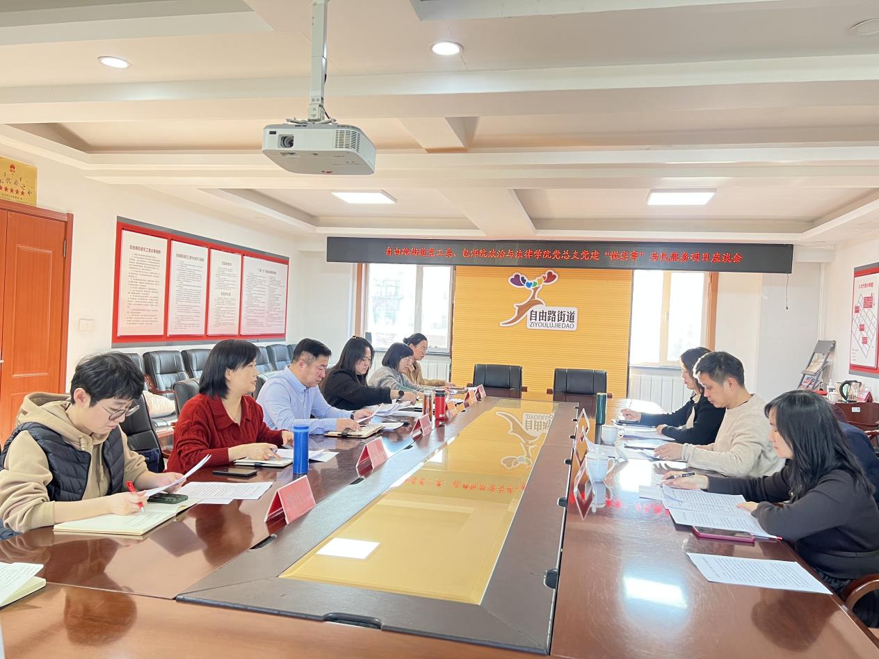 座谈会上,孙傲飚书记详细介绍了学院的资源和专业优势,并就2025年的党建“微实事”项目提纲提出了一系列建设性意见。孙书记强调,学院将依托自身在基层治理、法律宣讲及援助、社工人才培养等方面的专业特长,为自由路街道的社区治理提供强有力的支持和智力支撑。自由路街道党工委书记兼党群服务中心主任、人大工委主任郭越对学院的专业能力和积极参与表示赞赏,并全面介绍了街道的整体概况及2024年与学院联动开展的“青力青为赋治理”校社联动项目成果。郭书记表示,期待双方在新的一年里能够进一步深化合作,共同推动社区党建“微实事”项目取得实效。随后,与会人员围绕项目进行了深入交流和讨论,现场氛围热烈。通过此次座谈会,双方就项目方向初步达成高度共识,进一步完善街道社区党建 “微实事” 项目内容,确保项目精准对接需求、切实落地生效。