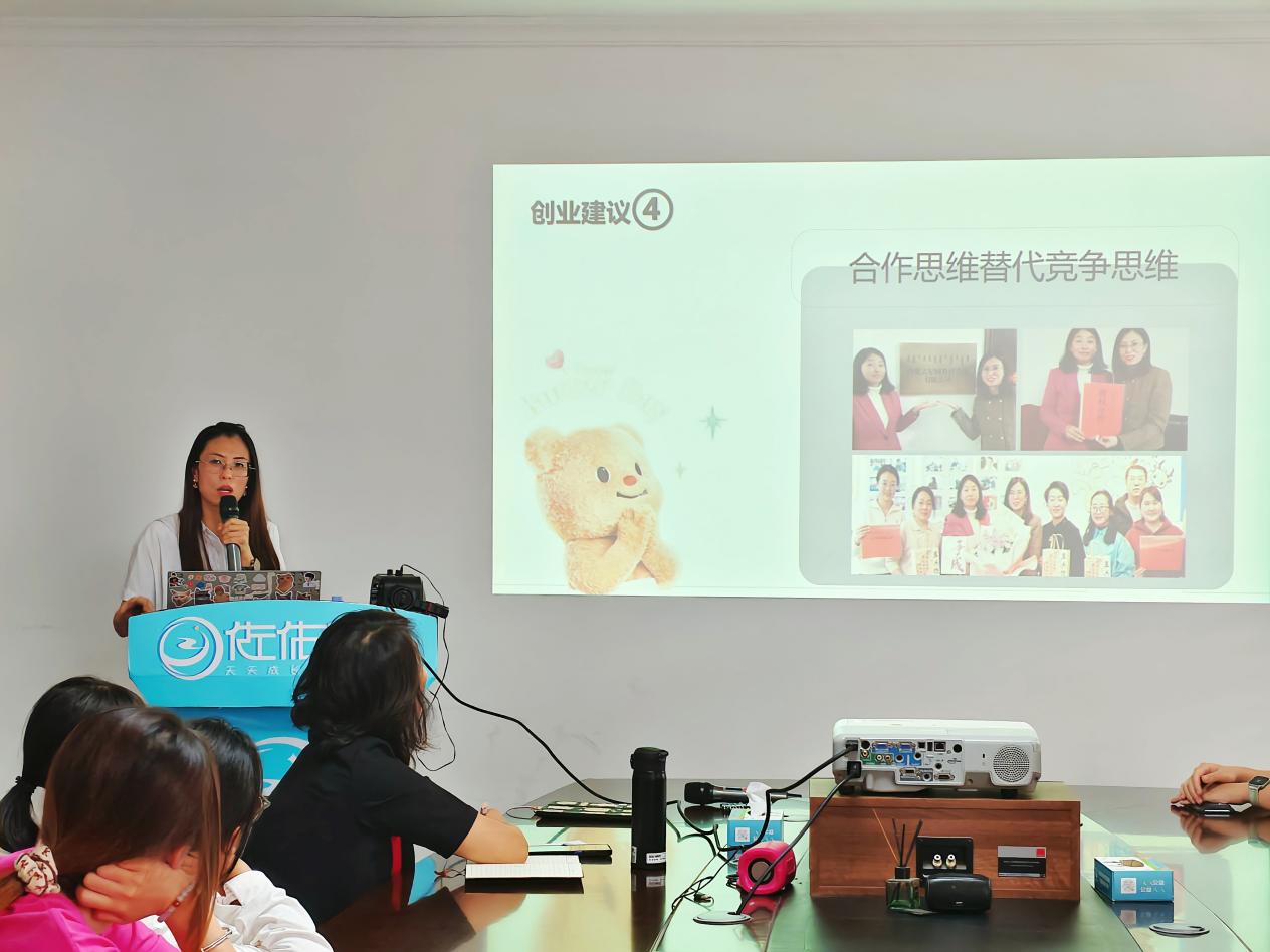 随后,内蒙古佐佑陪成企业服务有限公司的赵经理带来企业运营与创业经验分享。她先介绍了企业核心业务:以服务企业客户为导向,通过输出管理咨询、短视频代运营等服务,帮助企业解决内部管理难题与外宣获客痛点,以此构建盈利模式。在创业指导环节,她给出两大核心建议:创业选择需锚定“企业需求”与“国家方向”,既要聚焦中小企业生存痛点,也要紧跟国家扶持政策;创业实施要做到精准规划与定位,坚持轻资产小体量运营,以合作思维替代竞争思维,同时重视创业文化建设与团队价值观趋同,为有创业意向的学生提供了清晰思路。