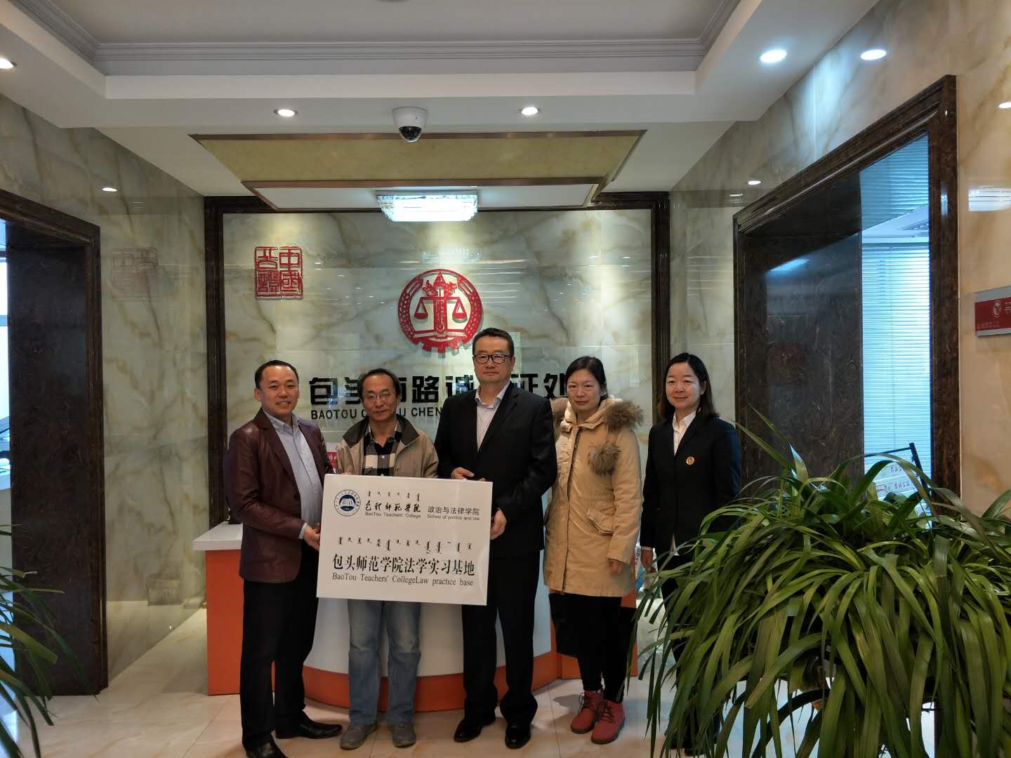 2018年11月6日包头师范学院政治法律学院法律系赴包头市路诚公证处举行实习基地挂牌仪式,将包头市路诚公证处作为法学专业稳定实习基地。同时法学教师看望了实习生,详细了解实习生在包头市路诚公证处的实习情况,听取了包头市路诚公证处关于实习生的日常工作安排。