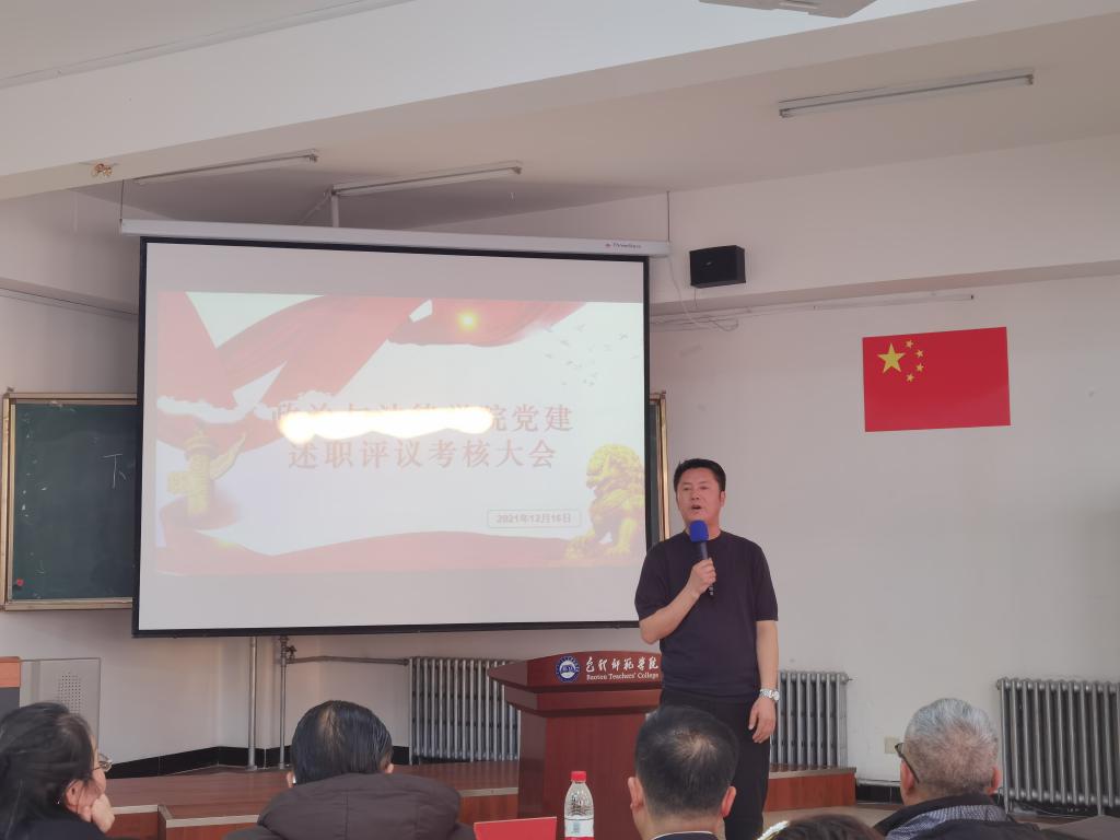 根据我校《党委组织部关于做好2021年度党组织书记抓基层党建述职评议考核工作的通知》安排,我院党总支高度重视,组织教师党支部、学生第一党支部、第二党支部为围绕党中央和自治区党委关于基层党建重点任务落实情况,结合我院实际,突出年度基层党建重点落实情况,于2021年12月16日召开了党支部书记抓基层党建述职评议考核大会,出席本次活动的有我院党总支书记高德胜、副院长李霞、党总支副书记郭宏升,教工党支部书记马慧,学生第一党支部书记袁爱荣,学生第二党支部书记白丽以及全体教师党员和学生党员。 会议由高德胜书记主持。
